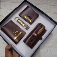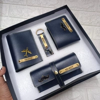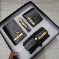 Customized Leather Mens Wallet Passport Cover Keychain Mirror Case Combo