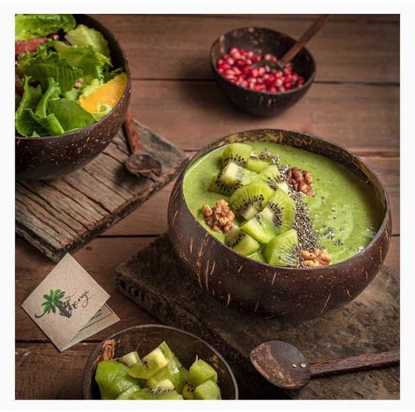 Thenga Jumbo 900ml Artisan Coconut Bowls and Spoon Sets Smoothies Salad Bowls